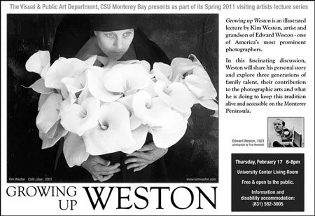 “Growing Up Weston” is the title of his illustrated lecture. Kim’s talk will reveal insights into three generations of one of the most important and creative families in photography.