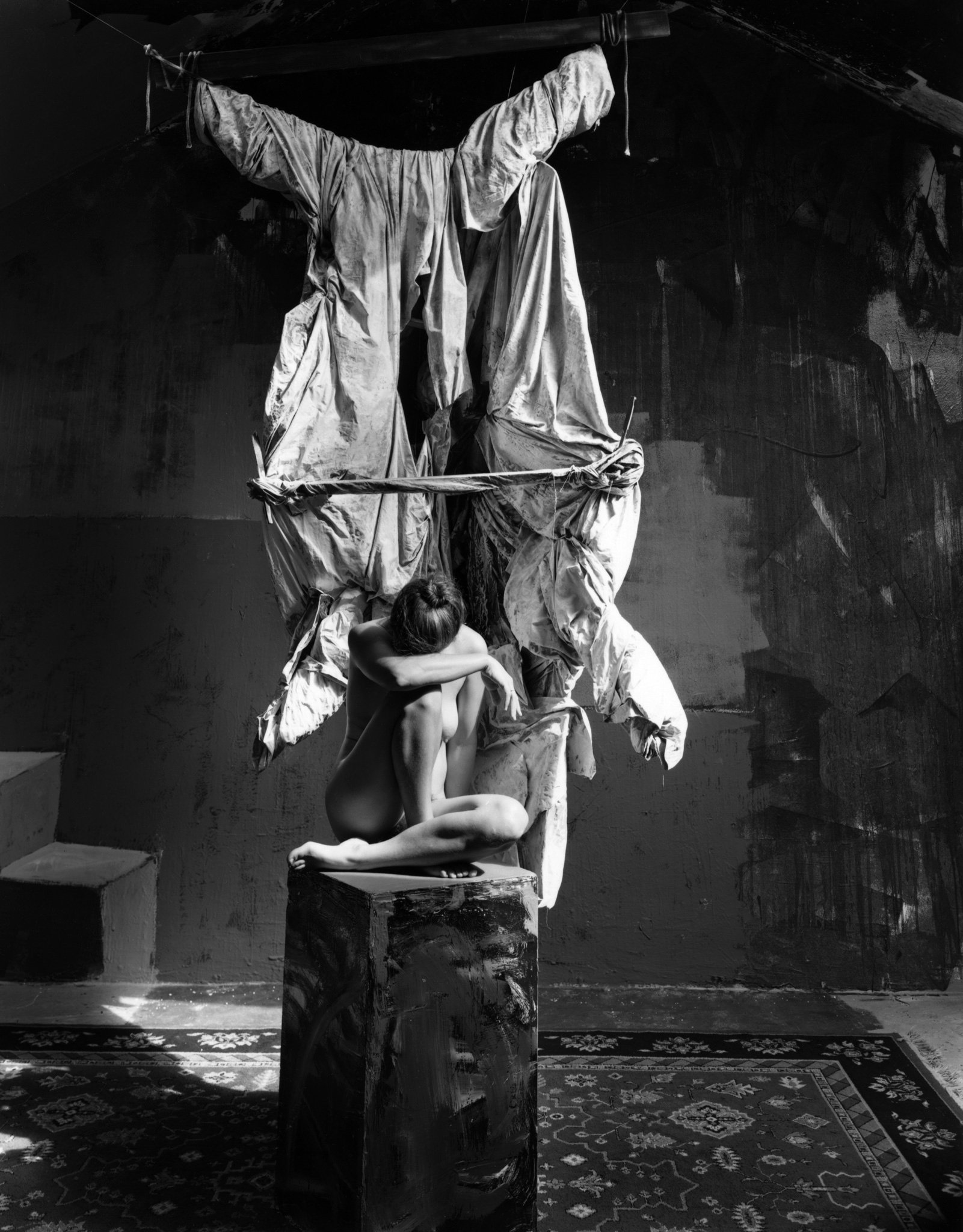 "I wanted more control over filling the rectangular frame," Kim explains. "With landscape photography, your control is limited to composition, lighting, and timing." So he moved into the studio, where he could build and paint sets, choreograph scenes, and most importantly, work with models. For over thirty years, this became his domain—a place where he could work through whatever was happening in his life, whether emotional struggles or personal challenges.